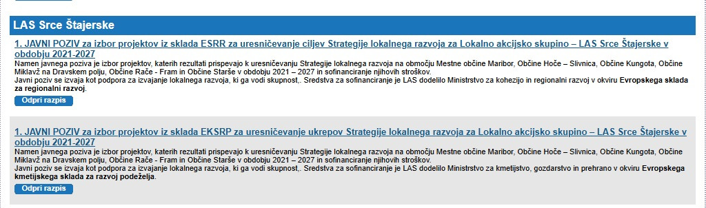 Dosegljiva je aplikacija za vnos vlog na oba odprta javna poziva za LAS Srce Štajerske